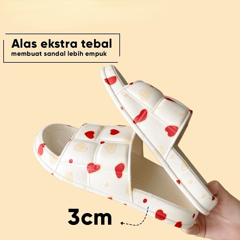Keunggulan produk : - Terbuat dari bahan PVC sehingga tekstur terasa lembut dan halus - Alas sandal design anti selip sehingga lebih aman - Alas sandal ketebalan 3CM terasa lebih comfy - Design aesthetic cocok digunakan dalam rumah atau saat bepergian - Awet dan tidak mudah hilang warna - Tidak berbau - Fleksible tidak mudah ganti bentuk Bahan: PVC