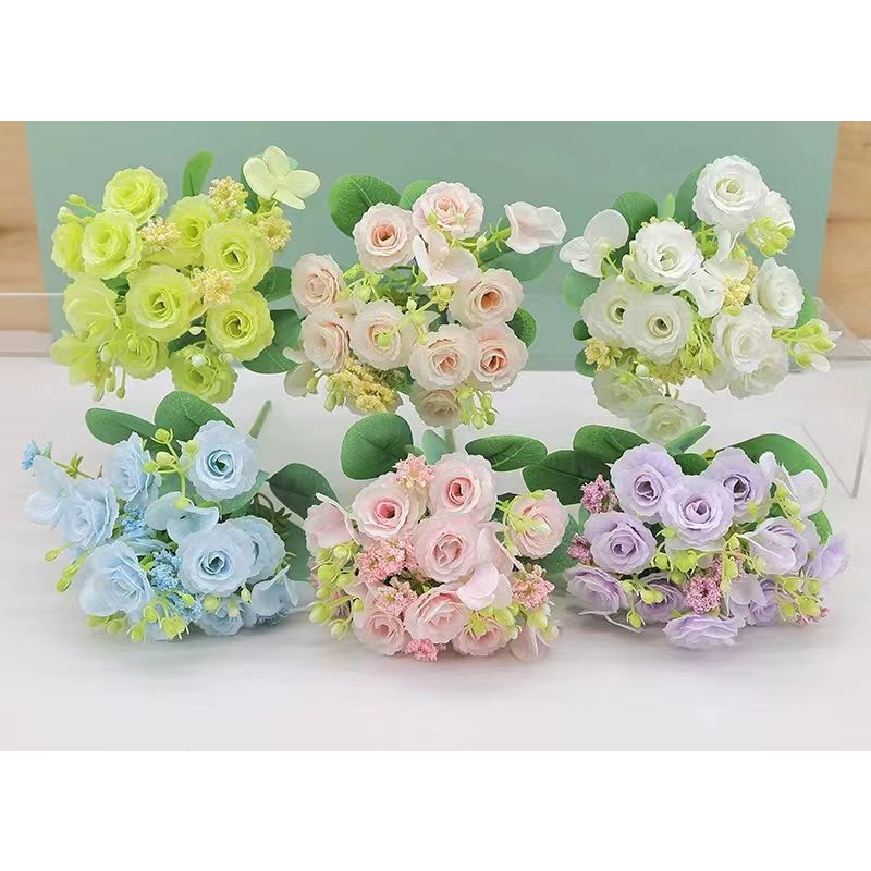 Souvenir & Party Supplies > Bunga > Buket Bunga > LDS FL11 (Tanpa Pot) Bunga Mawar Mini Bouqet bunga Hias Plastik Tanaman Artificial Bunga Tangkai Dekorasi Ruangan Import
