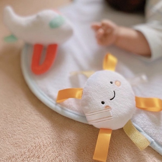 3. Sun Tagging Plush : Boneka kecil berbentuk matahari yang menggemaskan. Terbuat dari bahan felt yang lembut dengan warna yang cerah sehingga menarik perhatian bayi Anda. Terdapat pita-pita dengan tektur yang berbeda-beda. Dapat ditempelkan pada Sensory Board.