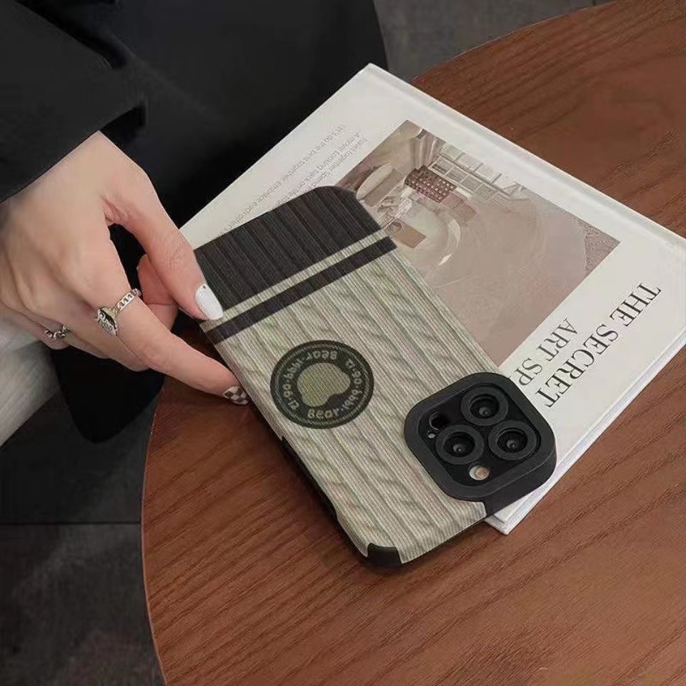 🔔【Ready Stock】 Leather Cute Grey Bear Soft Case for Samsung A21S A12 A50S A30S A20 A30 A32 A22S A52S A72 A10S A33 A53 A73 A13 A04S A23 A51 A71 A31 White Phone Case Women Girl