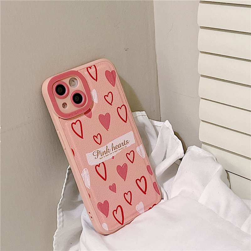 🔔【Ready Stock】 Leather Pink Love Soft Silicon Case HP iP iPhone 7 8 14 + Plus SE 2020 X XS XR Max 11 12 13 Pro Max FTD Casing Apple