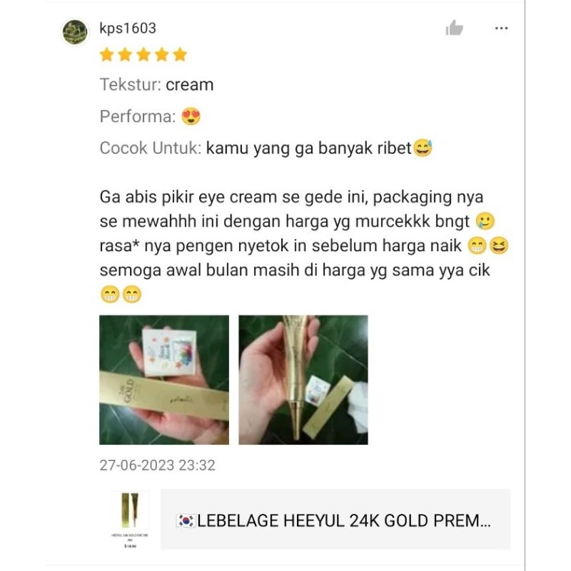 Detail 🇰🇷LEBELAGE HEEYUL 24K GOLD PREMIUM EYE CREAM 40ML