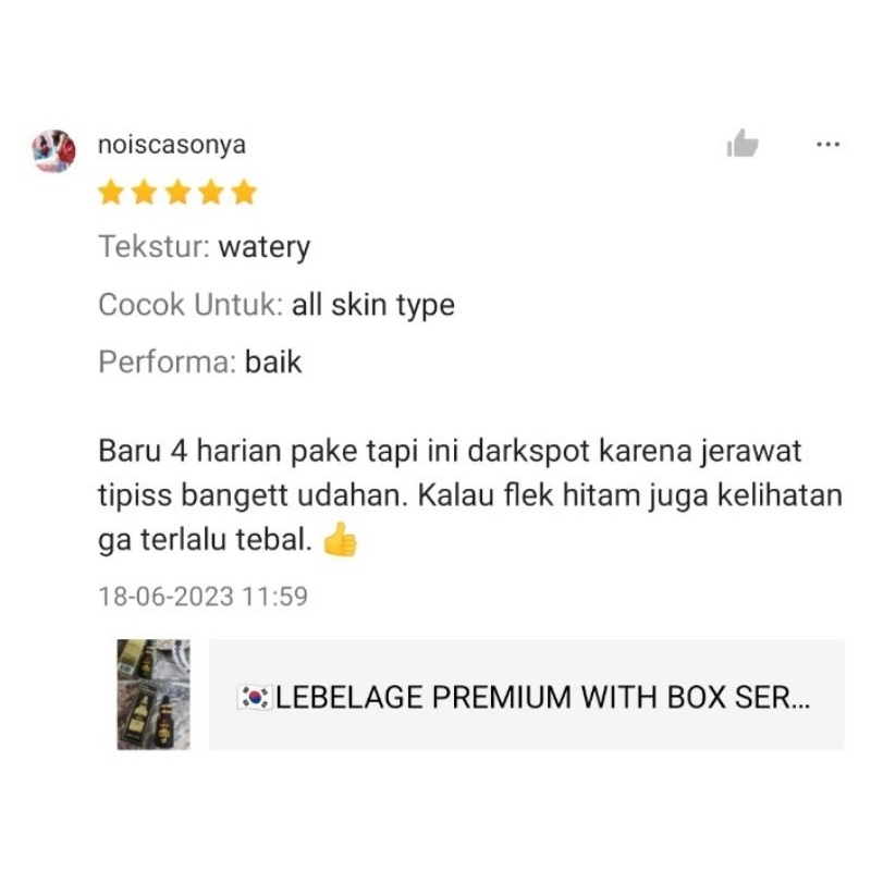 Bahan Tambahan: Ekstrak Centella asiatica: Memberikan elastisitas pada kulit dan membantu mencegah penuaan. Ekstrak Ginseng Merah: Memiliki efek meningkatkan elastisitas dan kerutan kulit, dan juga membantu memperbaiki masalah kulit. Ekstrak Teh Hijau: Melembabkan kulit.