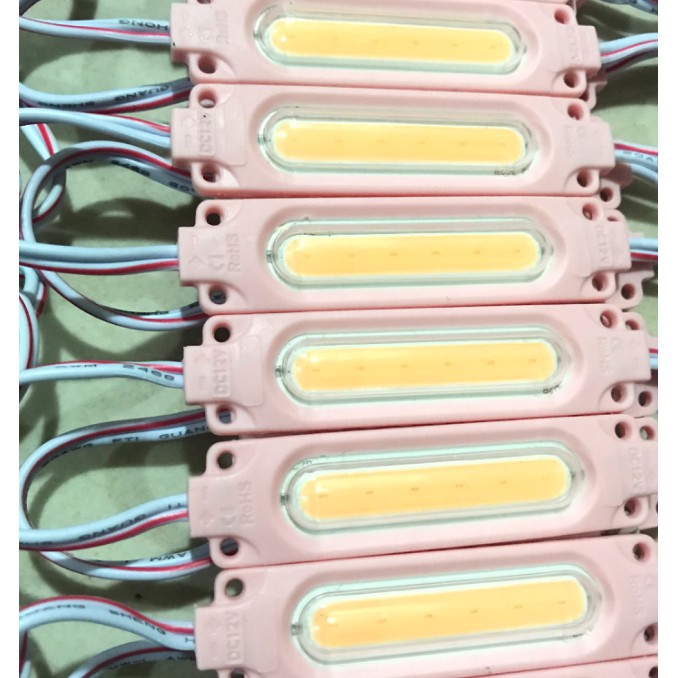 Spesifikasi Produk: Ukuran modul = 7 x 1,8 cm. Panjang LED COB = 4 cm. 1pcs terdiri dari 6 mata led 12v 3watt