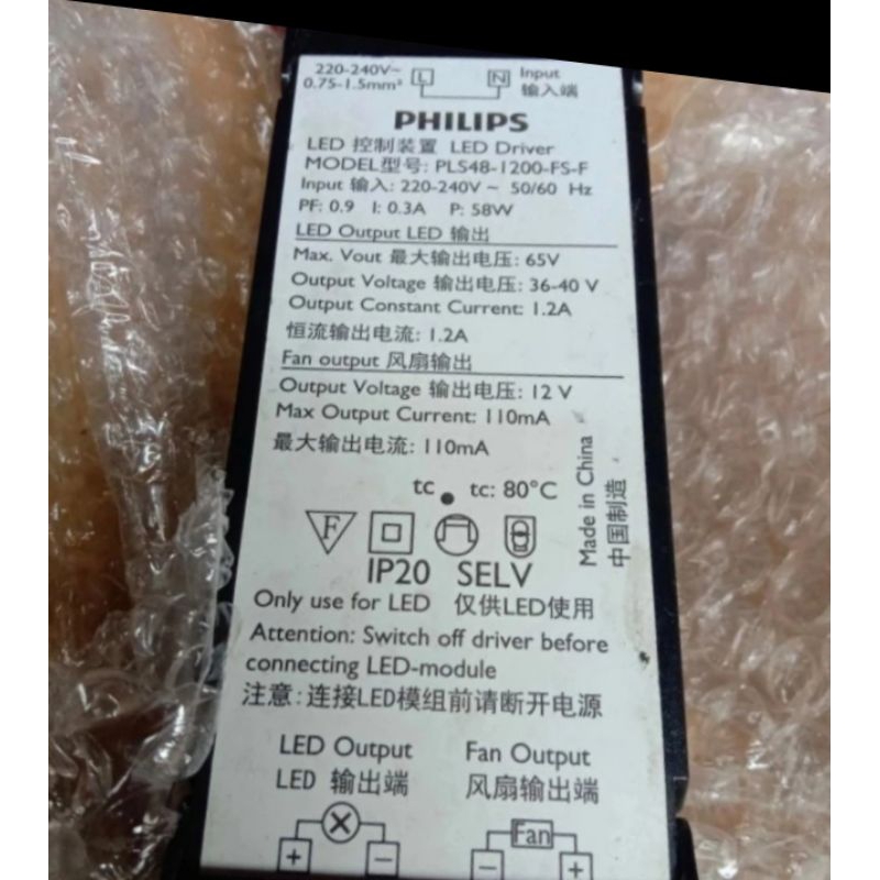 LED DRIVER MEREK PHILIPS - led driver - model : PLS48 - 1200 - FS - F - input : 220 - 240V - 50/60Hz - pf : 0,9 /1:0,3A / p : 58W