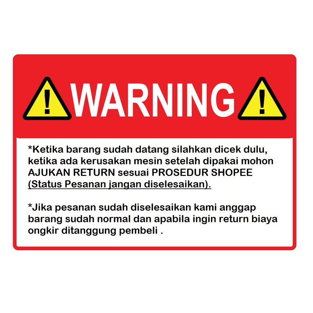 Jika produk diterima bermasalah baik Fungsi, Fisik maupun kekurangan barang, jangan ragu untuk menghubungi kami via chat Shopee ya kak. Kami akan memberikan solusi terbaik untuk kedua belah pihak. Jadi jangan buru-buru kasih Rating Jelek ya kak. Karena Garansi akan Hangus !!