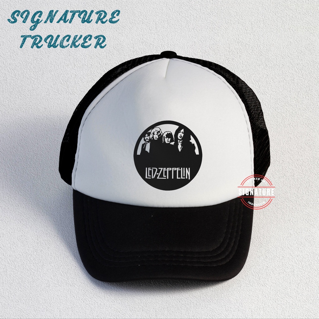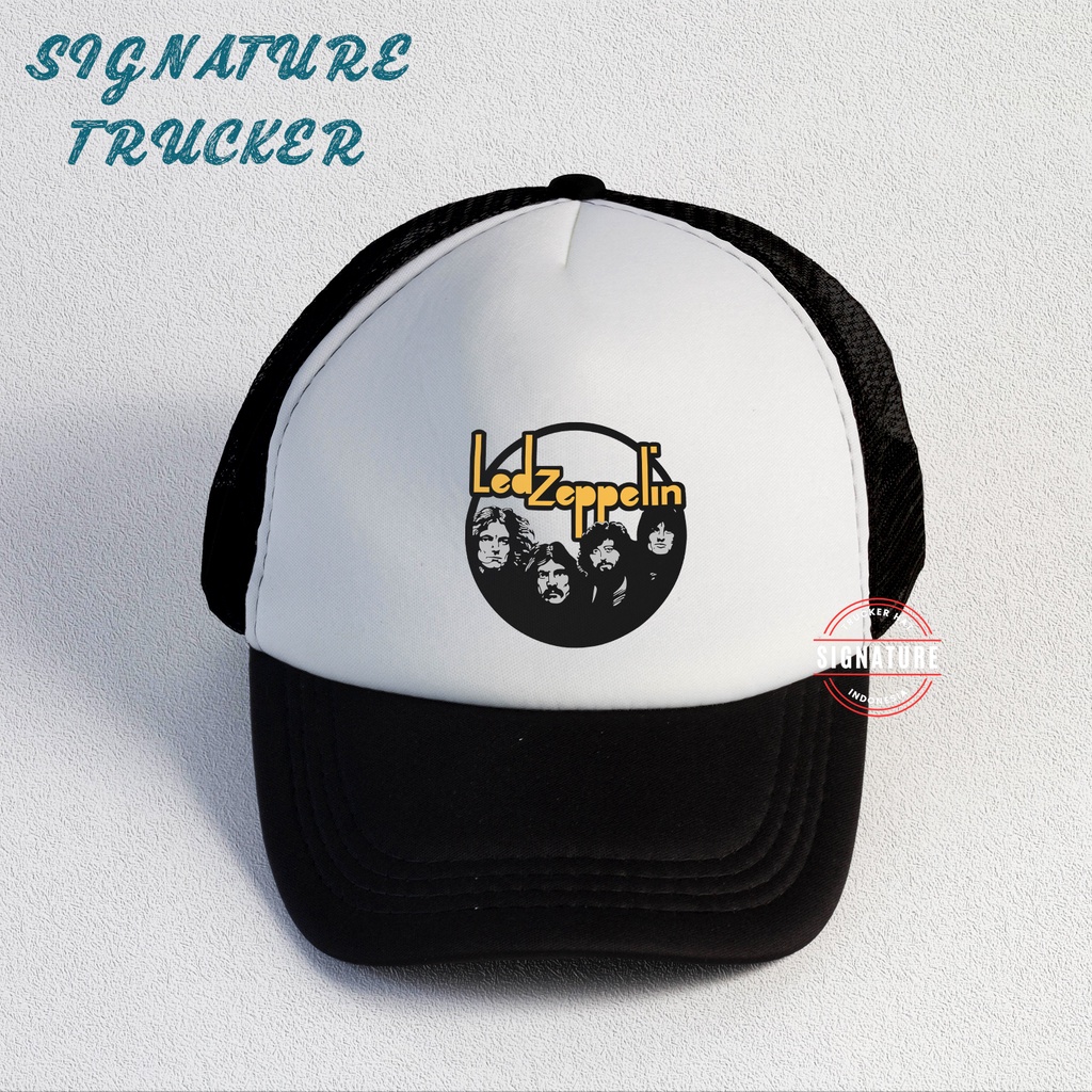 Detail Led Zeppelin | Trucker Hat Best Seller | Topi Pria | Topi | Trucker | Topi Band | Baseball | Band | Topi Jaring | Topi Sablon | Head Studio
