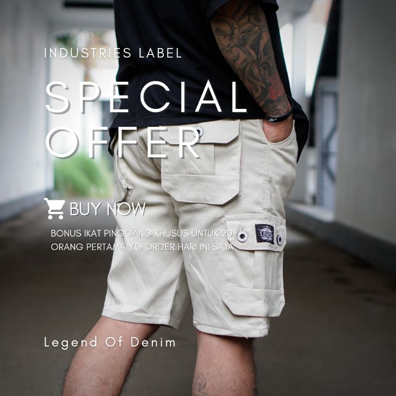 LEGEND DAYRIE Cargo Pendek Merek Legend of Denim Kualitas Original Premium Warna Grey , Mocca , Hitam , Cream , Ijo dan Navy