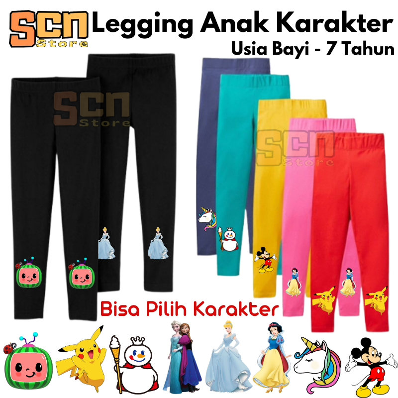 Detail Legging anak motif karakter usia bayi-7 tahun bahan kaos katun