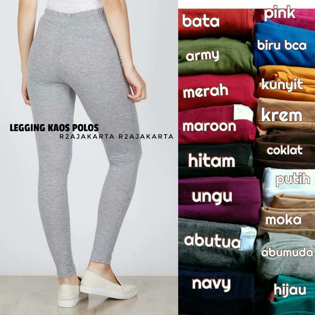CELANA LEGGING KAOS PANJANG POLOS HALUS ELASTIS WANITA STANDART - R2AJAKARTA