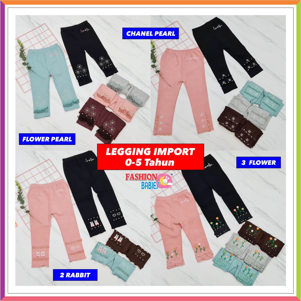 Detail LEGGING ROSES ANAK IMPORT NEW CHANEL FLOWER RABBIT 0-4 TH SMALL KECIL