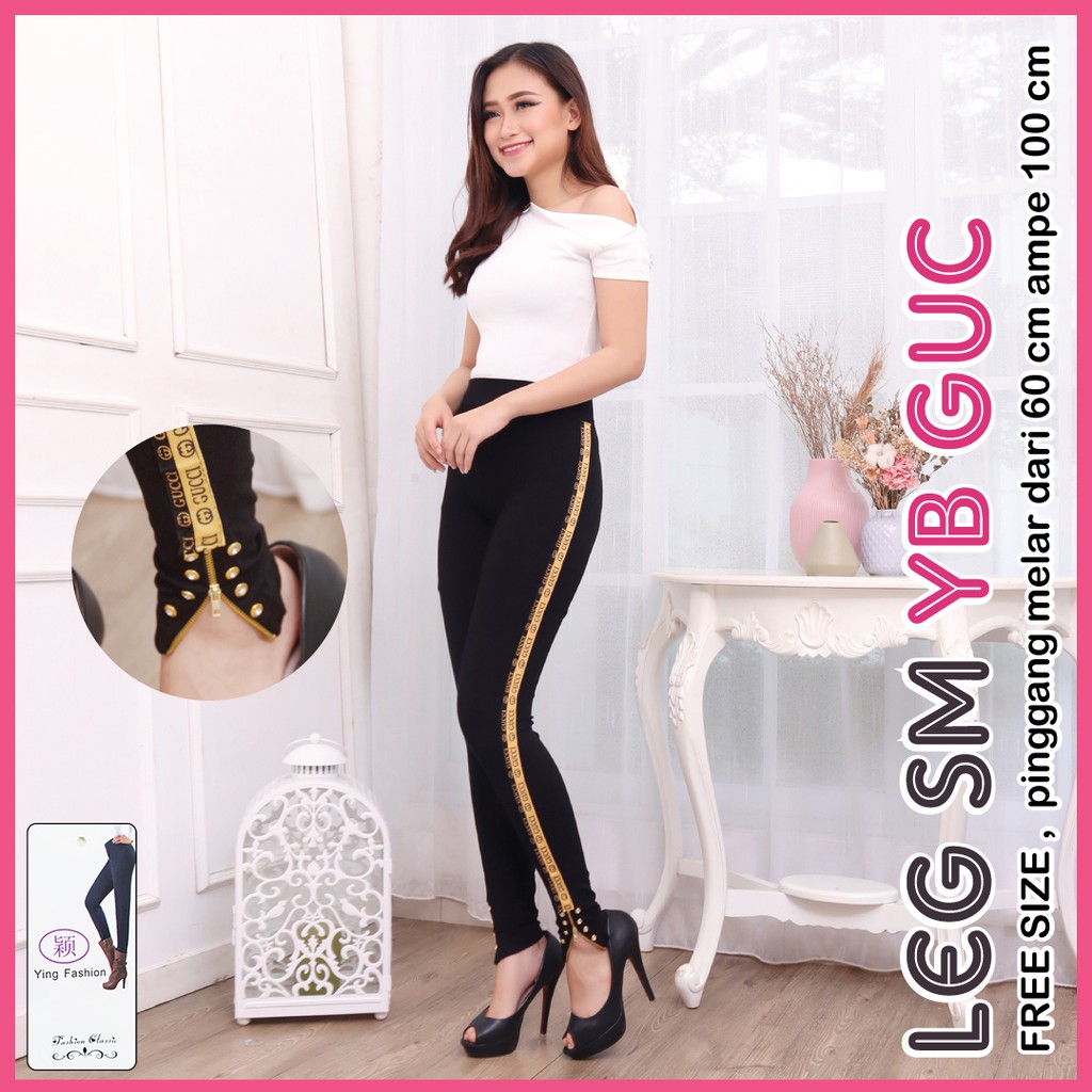 Legging import wanita lis samping zipper bawah degan MUTIARA
