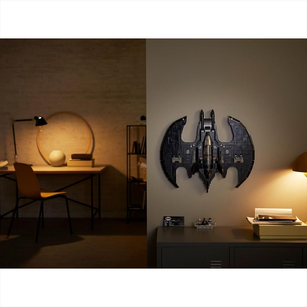 - Indulge your passion for the Caped Crusader with the LEGO DC BATMAN 1989 Batwing. If youre an adult Batman fan or a model-building enthusiast, this buildable display model of the Batwing is for you! - The iconic style of the Batwing from the 1989 BATMAN movie is enhanced by a sturdy stand, nameplate and 3 minifigures: BATMAN, THE JOKER and a Boombox goon. - This challenging and rewarding building project provides an engrossing and stress-relieving break from the real world and will look great when displayed on the wall or on its stand in your home or workplace. - Measuring over 4 (11cm) high, 20 (52cm) long and 22 (58cm) wide