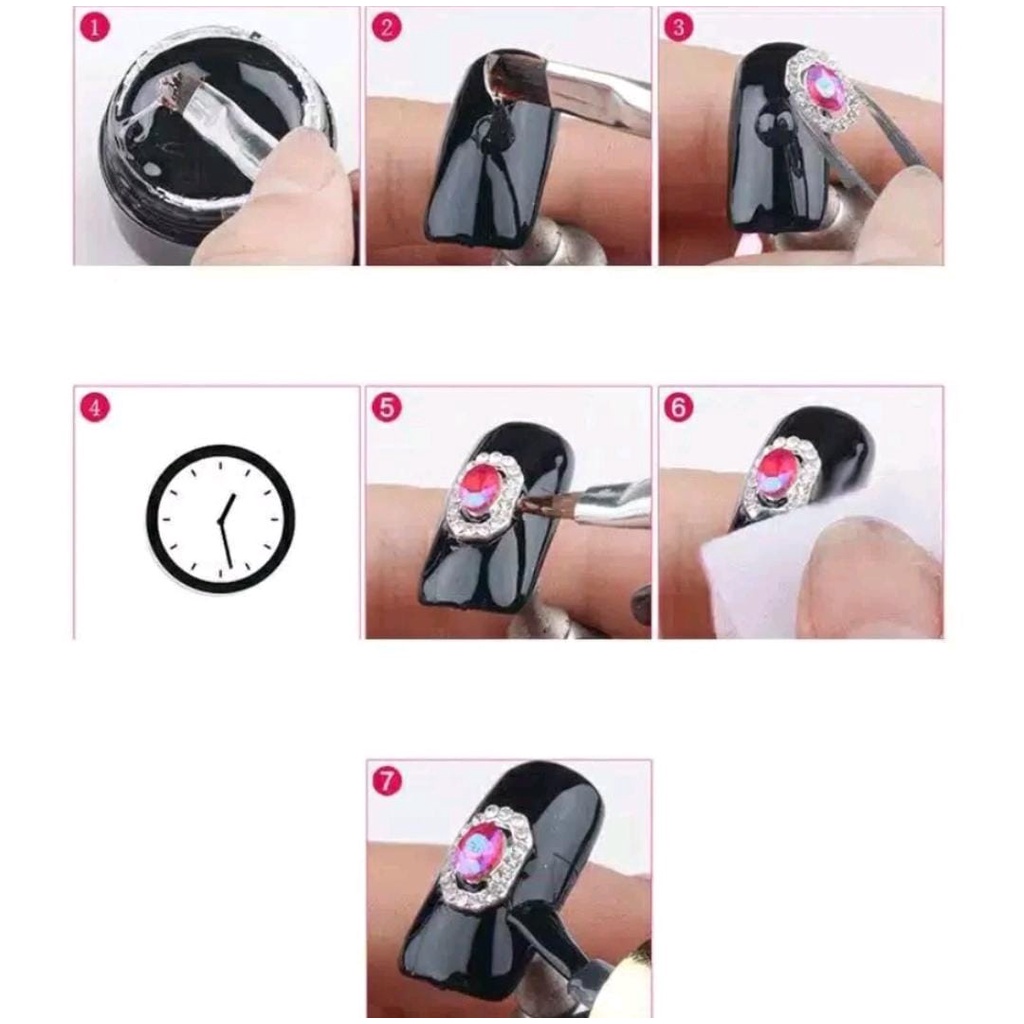 How to use: 1.Clean your nails 2.Apply adhesive on your nails 3.Put the rhinestone to the nails 4.then curing by led or uv lamp 5.Finish
