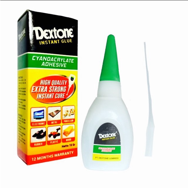 Deskripsi Lem Tetes Dextone / Lem Korea / Lem Tetes Instant /Cyanoacrylate Glue Instant Glue Bottle A single component adhesive with industry grade that have very fast setting, high flow ability and good penetration characteristic. Low viscosity and bond various materials such as metal, plastic, porcelain, ceramic, leather and wood.