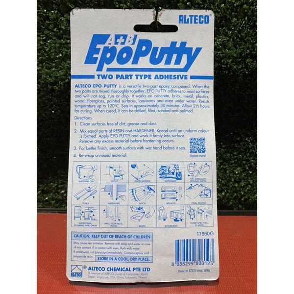 ALTECO Epo Putty adalah sejenis tanah liat dua bagian perekat epoxy untuk digunakan pada beton, fiberglass, logam, PVC, plastik, kayu, akuarium, dll.