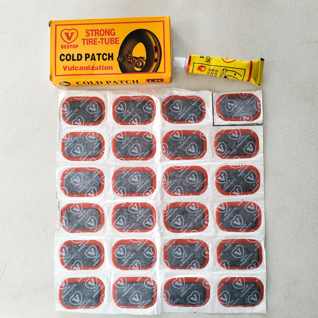 - Merk V Bestop - Isi 24 (5x3 cm) dan 48 (3,5x2,5 cm), sudah termasuk lemnya. - Bisa digunakan untuk tambal ban dalam sepeda atau motor.