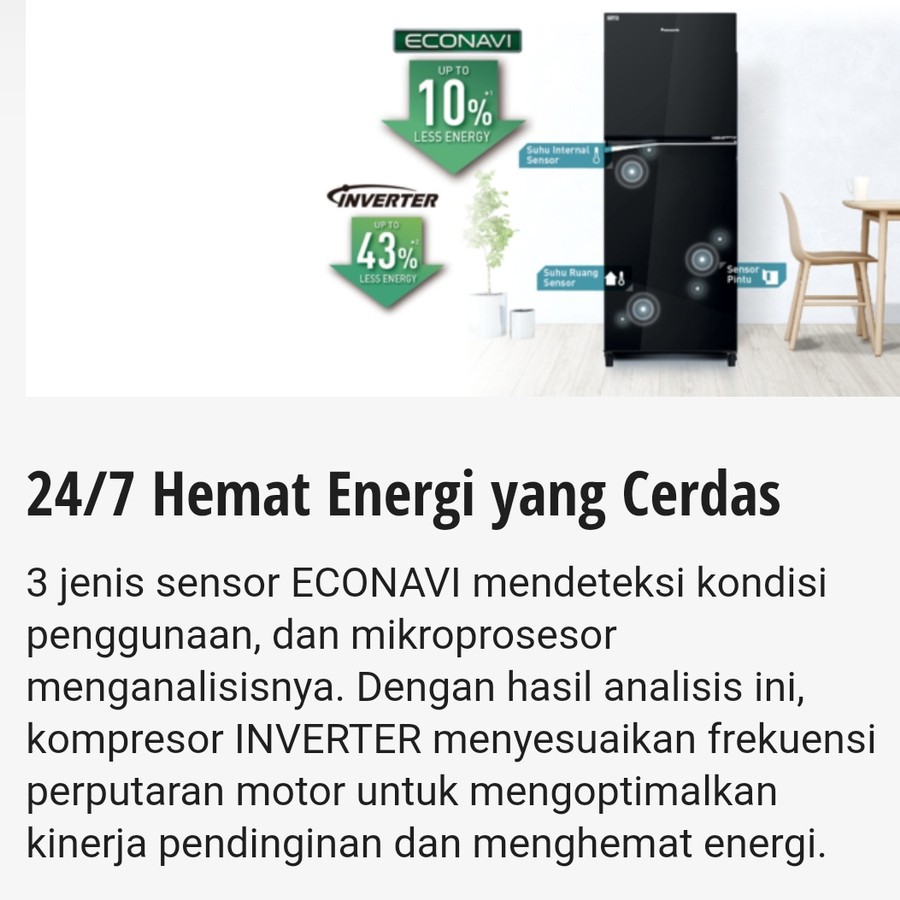 SPESIFIKASI Kapasitas Kotor (IEC 62552 -2007) Total 266 L Kapasitas Penyimpanan (IEC 62552-2007) Total 248 L Ukuran Produk (WxDxH) 555 x 624 x 1636 mm Standar / Regulasi SNI IEC 60335-1:2009; SNI IEC 60335-2-24:2009 Pemakaian Energi 241 kWh/year Berat 45 kg Tegangan 220 V~ (Label) Hertz 50 Hz Jumlah Pintu 2 Warna Pintu Sparkling Black, Shining Silver Bahan Pintu Metal (Stainless Steel) KOMPARTEMEN LEMARI ES (PC) Material Baki Resin (GP-PS) Kantung di Pintu Y Baki Telur Y Ruang Pembekuan Prime Fresh / Pilihan Dingin Y KOMPARTEMEN PEMBEKU (FC) Kotak Pembeku Y Pembuat Es Otomatis - Baki Es Y KOMPARTEMEN SAYURAN (VC) Kotak Sayuran Y Laci Y Sudut Botol Y Filter Kontrol Kelembapan Y LAINNYA ECONAVI Y Gas Bahan Pendingin R600a Material Isolasi Termal Cyclopenthane Anti-bakteri Y Deodorizer Y