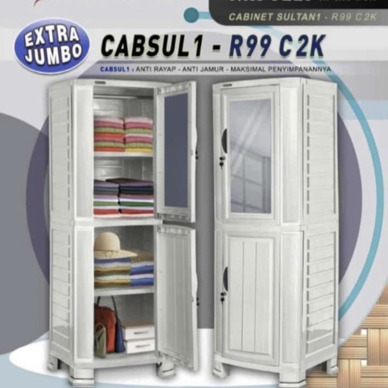 Keterangan Produk : - Kode Cabsul 1 R99 - Ukuran 65x52x181cm - Pintu Bermotif Urat - Dilengkapi Cermin - Ada Gantungan Besi Chrome - Kaki Kokoh dan Kuat - Tempat Penyimpanan Luas - Mudah Dibersihkan - Anti Rayap, Anti Jamur dan Anti Air