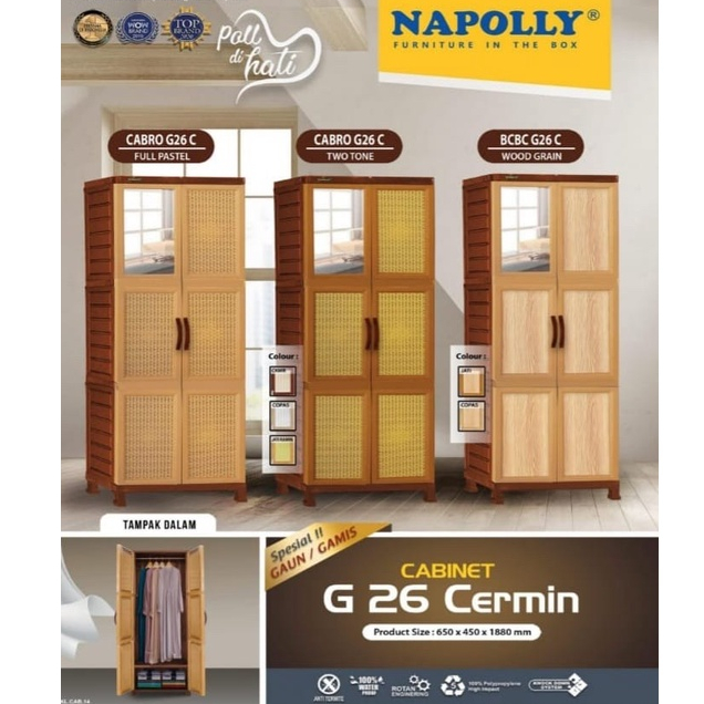 Perlengkapan Rumah > Furniture > Lemari Pakaian > lemari pakaian plastik baju gantung napolly motif anyaman rotan CABRO G 26 C ELEGANT