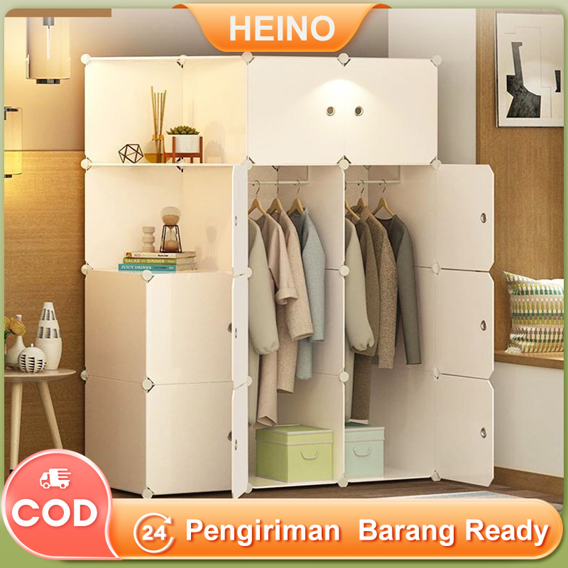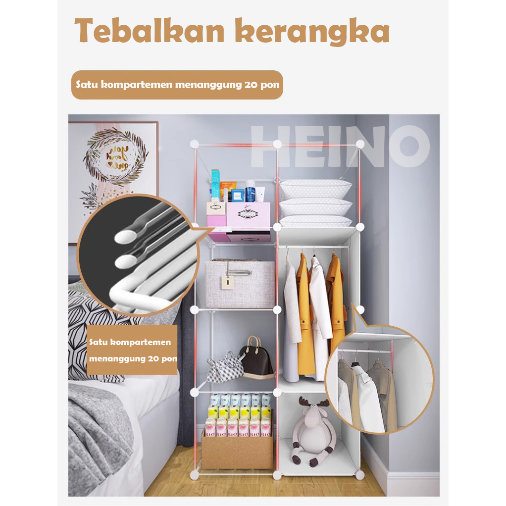 Video perkenalan produk Lemari pakaian plastik HEINO lemari pakaian multi-grid stackable gantungan serbaguna portabel gantungan kotak finishing gantungan. Sumber: Shopee.