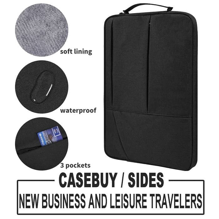 Terbuat dari bahan kain yang nyaman digenggam, case ini juga ditambah dengan lapisan lembut pada bagian dalam untuk melindungi device yang Anda bawa. Carrying Case Fits In A Bag Bawa device Anda dengan case ini untuk proteksi maksimal, atau gunakan case ini sebagai layer tambahan didalam tas atau backpack Anda Water Repellen Sleeve Case ini memiliki lapisan pelindung anti air yang mampu mencegah air hujan atau cipratan air masuk mengenai macbook Anda. Compability dari berbagai merek, termasuk Apple Macbook, Dell, HP, Asus, Lenovo, Acer, dll. Extra Pocket Pada bagian depan terdapat 3 kantung tambahan dengan zipper sebagai tempat untuk menyimpan kebutuhan aksesories komputer yang Anda bawa, seperti : charger, mouse, usb, handphone, dll Side Handle & Strap Inside Dilengkapi dengan handle pada bagian samping tas ini sehingga memudahkan Anda membawa laptop dengan nyaman dan juga terdapat strap pemisah untuk laptop dan berkas lainnya pada bagian dalam tas untuk membuat laptop Anda tidak mudah bergerak dan selalu pada posisi nya Dimensi Tas : 30 x 22 x 3 cm Dimensi Pouch : 17.5 x 13 x 5 cm