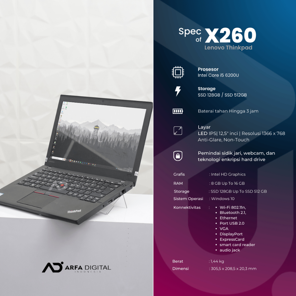 Detail Lenovo Thinkpad X260 Intel Core i5 Gen 6 RAM 8GB SSD 256GB Mulus LIKE NEW Bergaransi