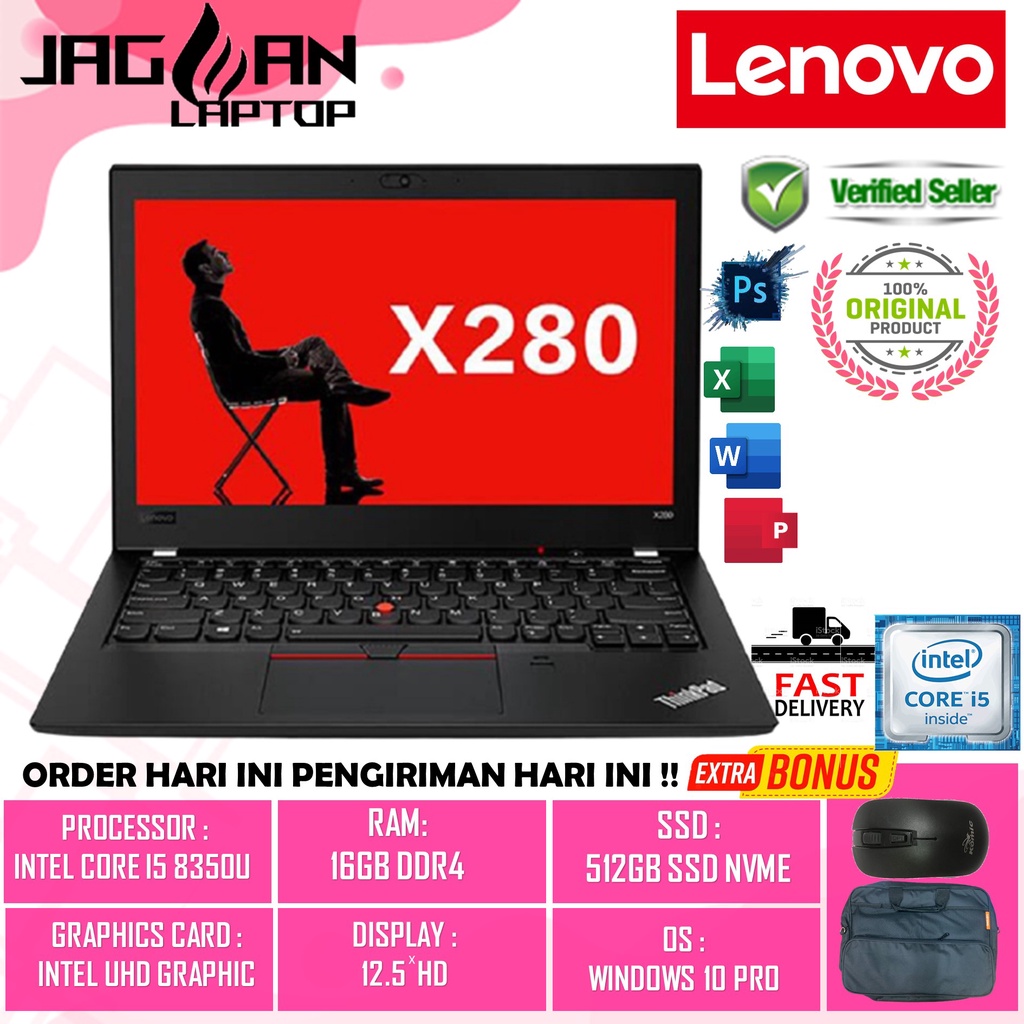 Video perkenalan produk LENOVO THINKPAD X280 INTEL I5 8350U 16GB 256GB 12.5" WIN10PRO BLACK SECOND. Sumber: Shopee.