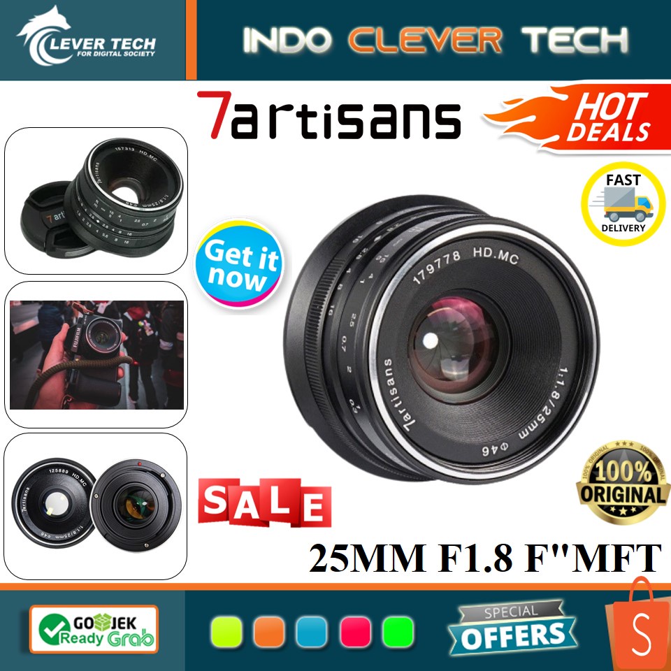 ✅100% ORIGINAL dan BARU ✅READY STOCK ✅GET IT NOW !!! ✅GRAB / GOJEK READY FAST ----------------------------------------------------------------------------------------------------------------------- Lensa 7Artisans 25mm f1.8 for Panasonic dan Olympus M 4/3 begitu portabel untuk fotografi Anda, lensa ini kompatibel untuk kamera dengan Mount M 4/3 seperti Panasonic: G1, G2, G3, G4, G5, G6, G7, GF1, GF2, GF3, GF5, GF6, GM1, GM5, GM10, GX1, GX7, GX8, GH1, GH2, GH3, GH4 dan Olympus epm1, epm2, E-PL1, E-PL2, E-PL3, E-PL5, E-PL6, E-PL7, E-PL8, E-P1, E-P2, E-P3, E-P5, E-P6. Namun, pastikan terlebih dahulu untuk Switch ke Frame APS-C sebelum penggunaan, karena lensa ini tidak tersedia untuk kamera full frame.
