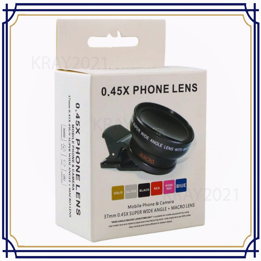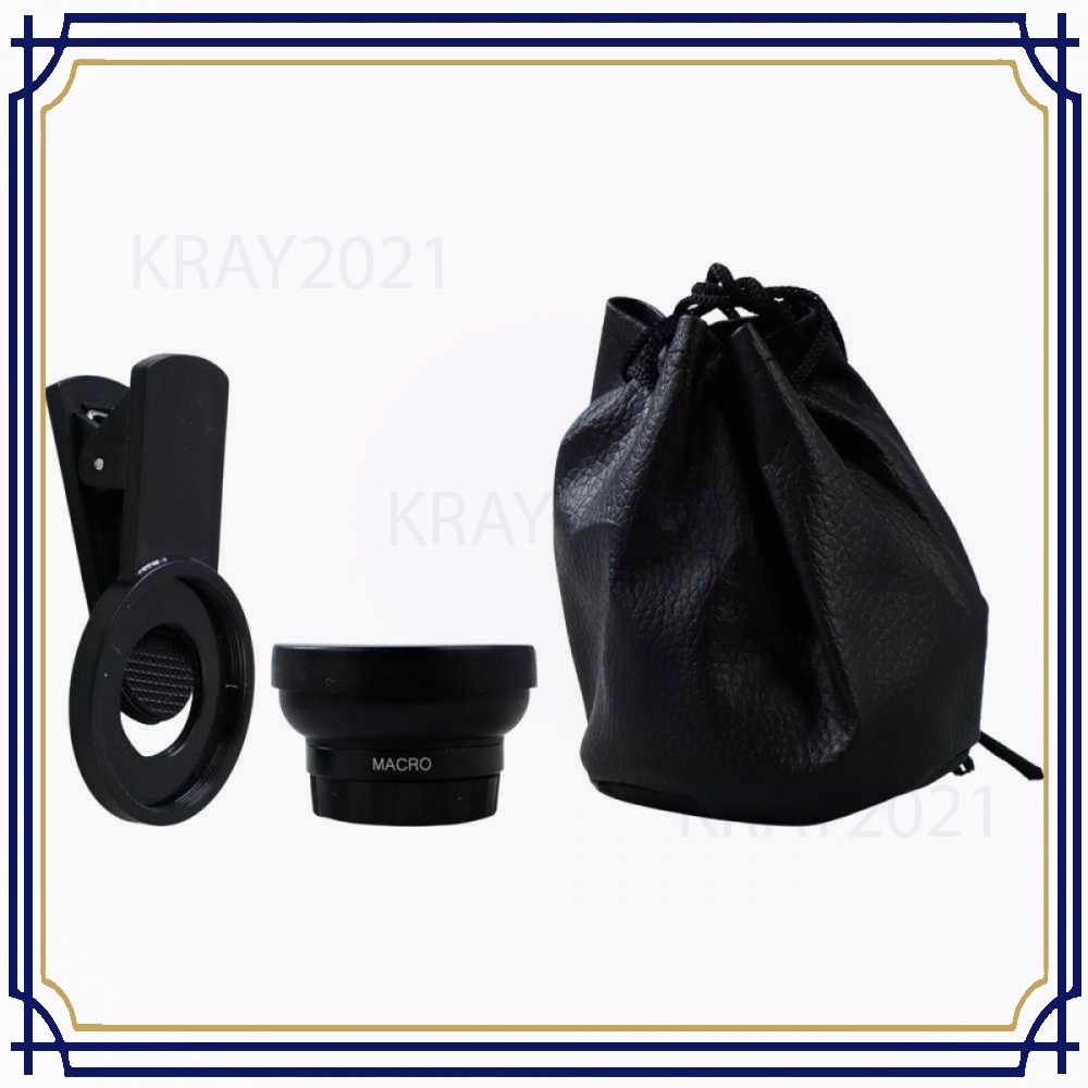 Isi paket: 1 x Lensa Super Wide Angle Lens 0.45X + Macro Smartphone -SP847 1 x Klip 1 x Pouch