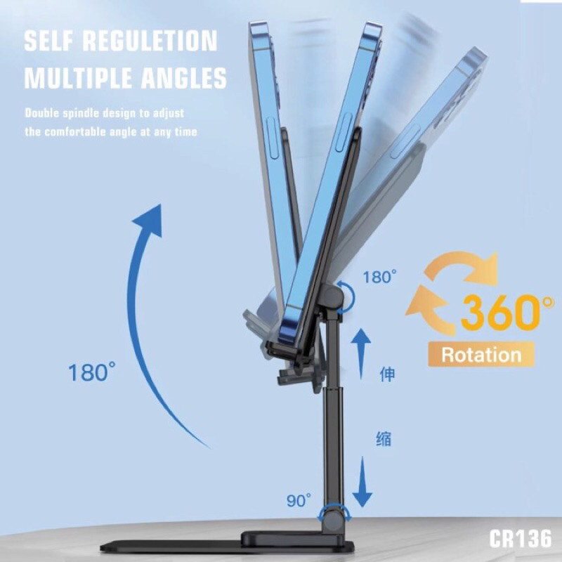 Holder Lenyes CR136 Stand Dudukan HP Tablet Lipat Anti Slip Alas Besi