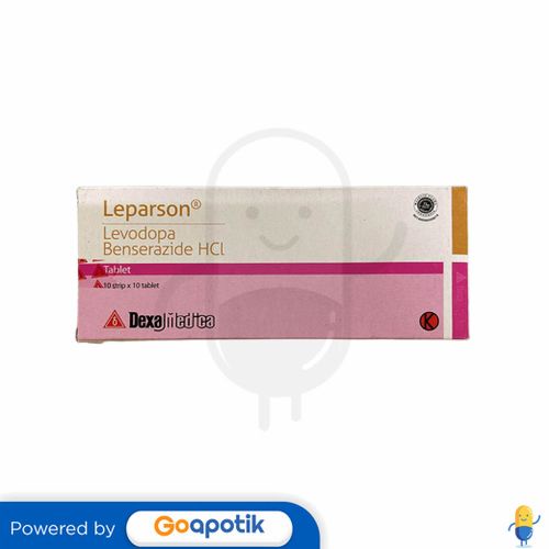Deskripsi : PENGGUNAAN OBAT INI HARUS SESUAI PETUNJUK DOKTER. Digunakan untuk mengobati penyakit parkinsonisme, parkinsonisme simtomatik pasca ensefalitis kecuali parkinsonisme yang dipicu oleh obat. | Komposisi : Tiap tablet mengandung levodopa 100 mg dan benserazide 25 mg | Dosis : ATURAN PAKAI HARUS SESUAI DENGAN PETUNJUK DOKTER. Dosis awal 1/2 tablet 3-4 kali sehari. Dosis kemudian ditingkatkan tiap minggu, dalam dosis tunggal atau terbagi per hari. Untuk pemeliharaan 2 tablet 3 kali sehari | Indikasi : Digunakan untuk mengobati penyakit parkinsonisme, parkinsonisme simtomatik pasca ensefalitis kecuali parkinsonisme yang dipicu oleh obat. | Perhatian Khusus : Wanita hamil dan ibu menyusui, tidak boleh digunakan untuk terapi mikosis sistemik, glaukoma sudut sempit, psikosis, endokrin tak terkompensasi yang berat, gangguan ginjal, hati, paru, dan jantung. Hentikan terapi jika timbul iritasi atau sensitiasi. | Kemasan : DUS, 10 STRIP @ 10 TABLET SALUT SELAPUT | NIE : DKL0305032610A1