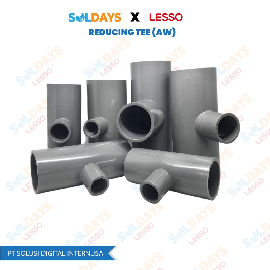 Merk: LESSO Bahan : PVC Type : AW Bentuk : Reducing Tee Warna : Abu-abu