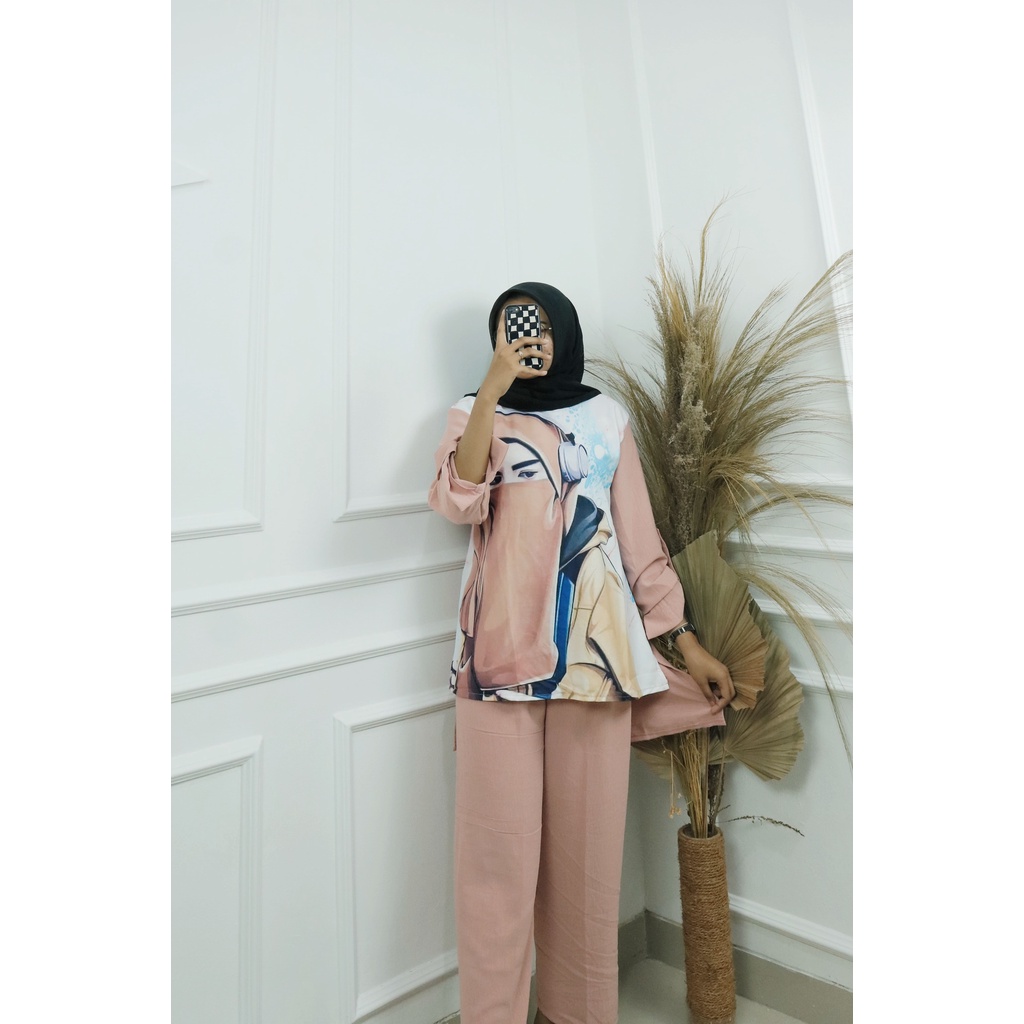 Fashion Muslim > Dress Muslim > Set Baju Muslim > LESTY SET BAHAN CRINKLE AIRFLOW APLIKASI SABLON UKURAN M L XL DAN XXL SETELAN WANITA TERBARU 2022 MODEL KEKINIAN ONE SET WANITA KOREAN STYLE SET BAJU DAN CELANA JUMBO PAKAIAN SANTAI WANITA
