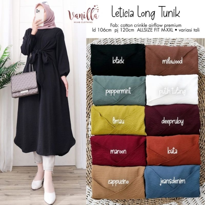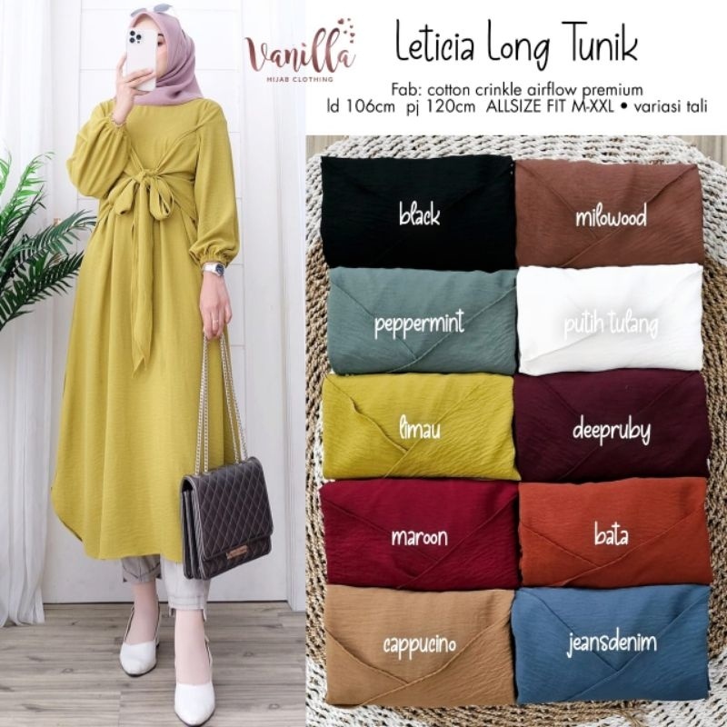 Detail LETICIA LONG TUNIK ORI BY VANILLA | Cotton Crinkle Airflow