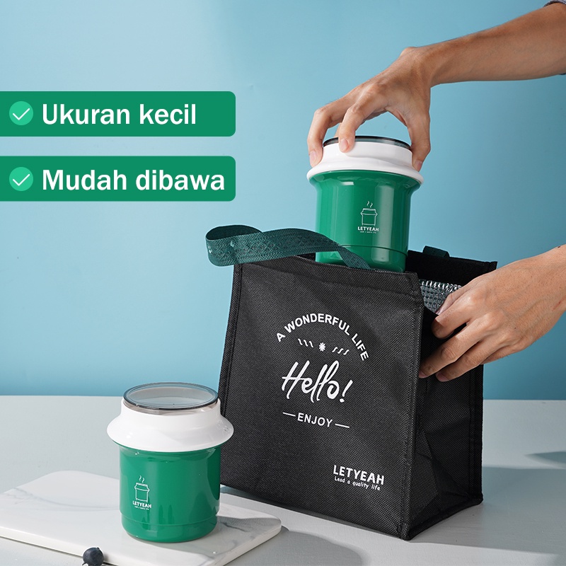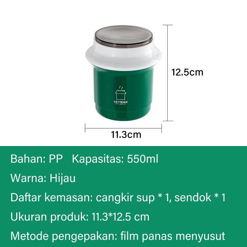 Detail Letyeah & Anantagt 550ml Cangkir Sup Portabel Tempat Sup Anti Tumpah Hijau Soup cup BPA Free Mangkuk Sup Dengan Sendok