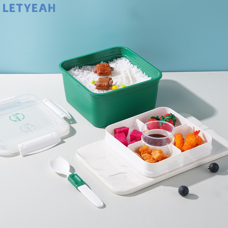 Perlengkapan Rumah > Peralatan Dapur > Tempat Penyimpanan Makanan > letyeah Kotak makan anti tumpah dengan sauce cup /1600ml lunch box tempat makan double layer/salad box