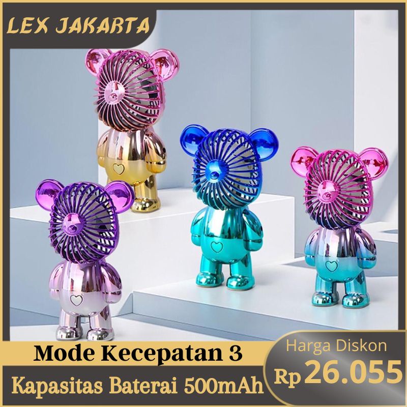 LEXJAKARTA Kipas Angin Mini Portable / Mini Fan Karakter Beruang USB Cas / Kipas Angin Mini Beruang Alas Anti Slip Bagian