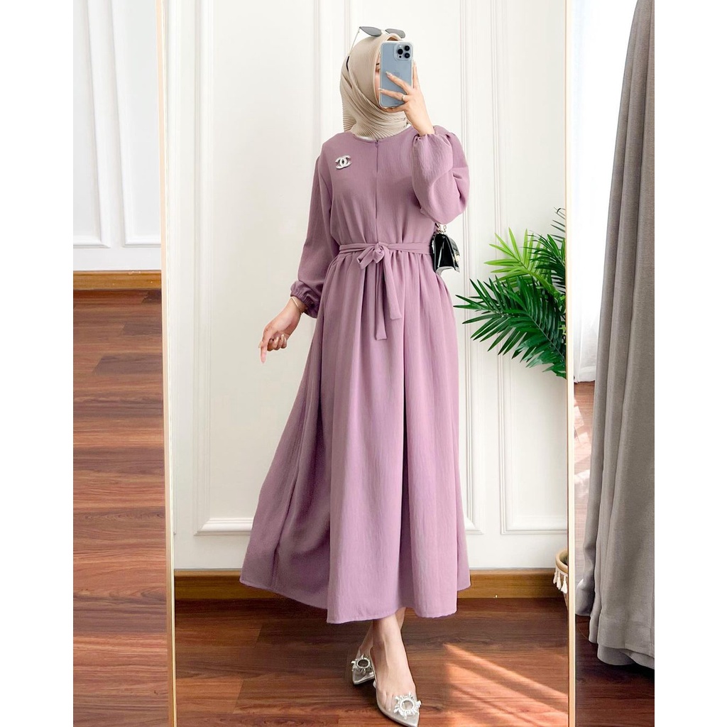Fashion Muslim > Dress Muslim > Gamis > Liana Midi Dress Wanita Dewasa Busui Fit To L+ LD 110CM Jumbo Bahan Crinkle Airflow Premium Polos / Baju Gamis Wanita Muslim Tali Lepas Pasang Kekinian