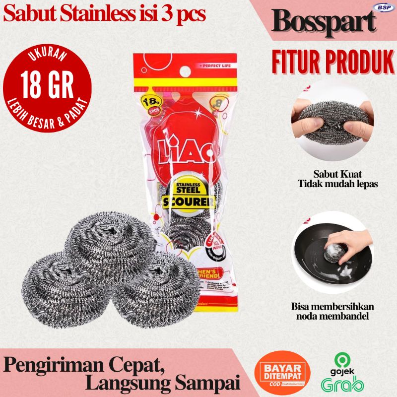 LIAO Sabut Stainless Steel adalah sabut yang terbuat dari bahan stainless anti karat yang cocok untuk membersihkan noda / kerak pada panci, peralatan makan, wastafel dan lainnya. Stainless Steel tebal dan nyaman digenggam karena berbobot variatif dari 18 gram, 20 gram & 24 gram..