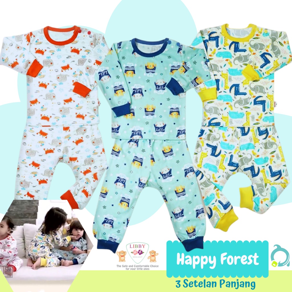 LIBBY 3 Setelan ( 3 Baju & 3 Celana) Panjang / Pendek / Kuntung # Motif # Size S / M / L