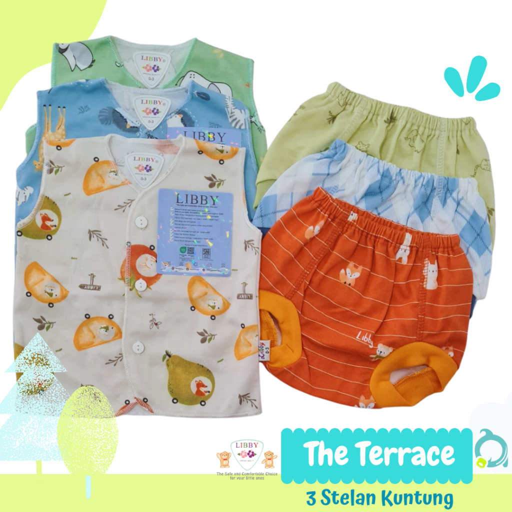 Detail LIBBY (Motif 2) 3 Setelan Kuntung ( 3 Baju 3 Celana) Baju Bayi Baru Lahir / Newborn