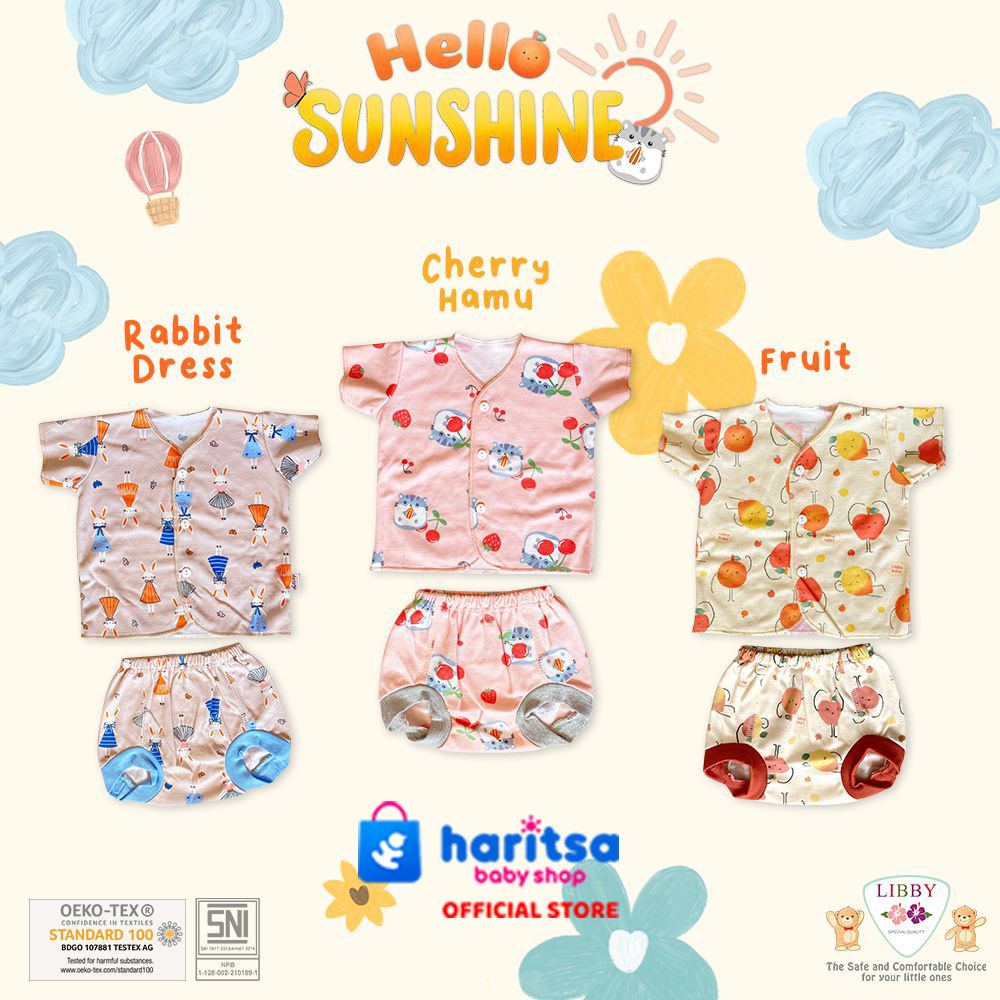 LIBBY BABY Setelan Pendek Celana Pop Size : 3-6 bulan ( 4 - 6kg) LD : 24 cm, Panjang Baju : 27cm