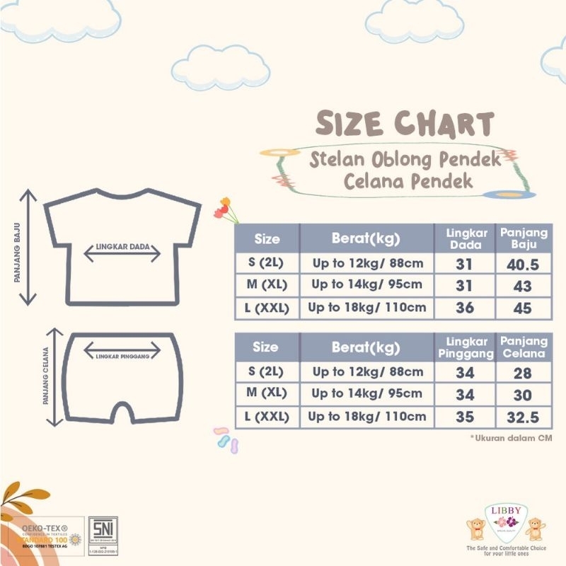 size oblong SML Big : uk. 2L LD=32 Pjg baju=39 BB=8-11 kg. Uk. XL LD=33 Pjg baju=41 BB=11-14 kg. Uk. XXL LD=34 Pjg baju=43 BB=15-18 kg.