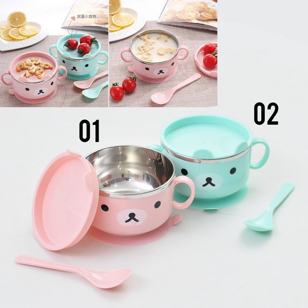 LID059 - Mangkok Stainless (Include Silicone+Penutup+Sendok)STOCK JAKARTA!