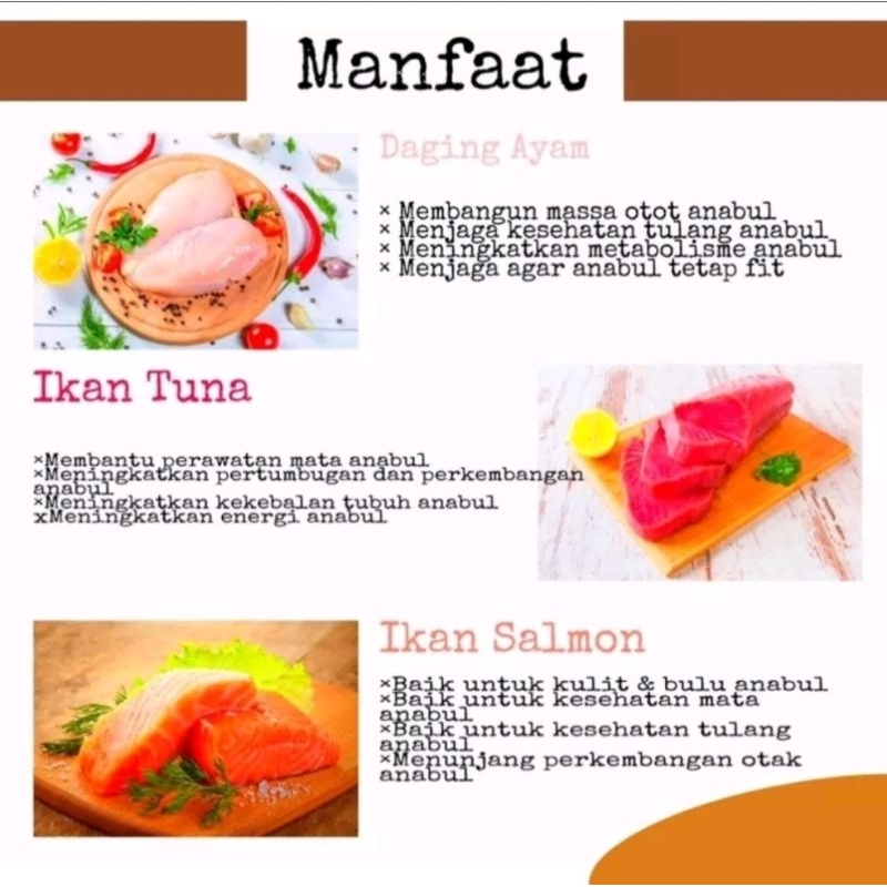 Tersedia 3 variant rasa harga perpcs 1. Chicken 2. Cod Fish 3. Tuna