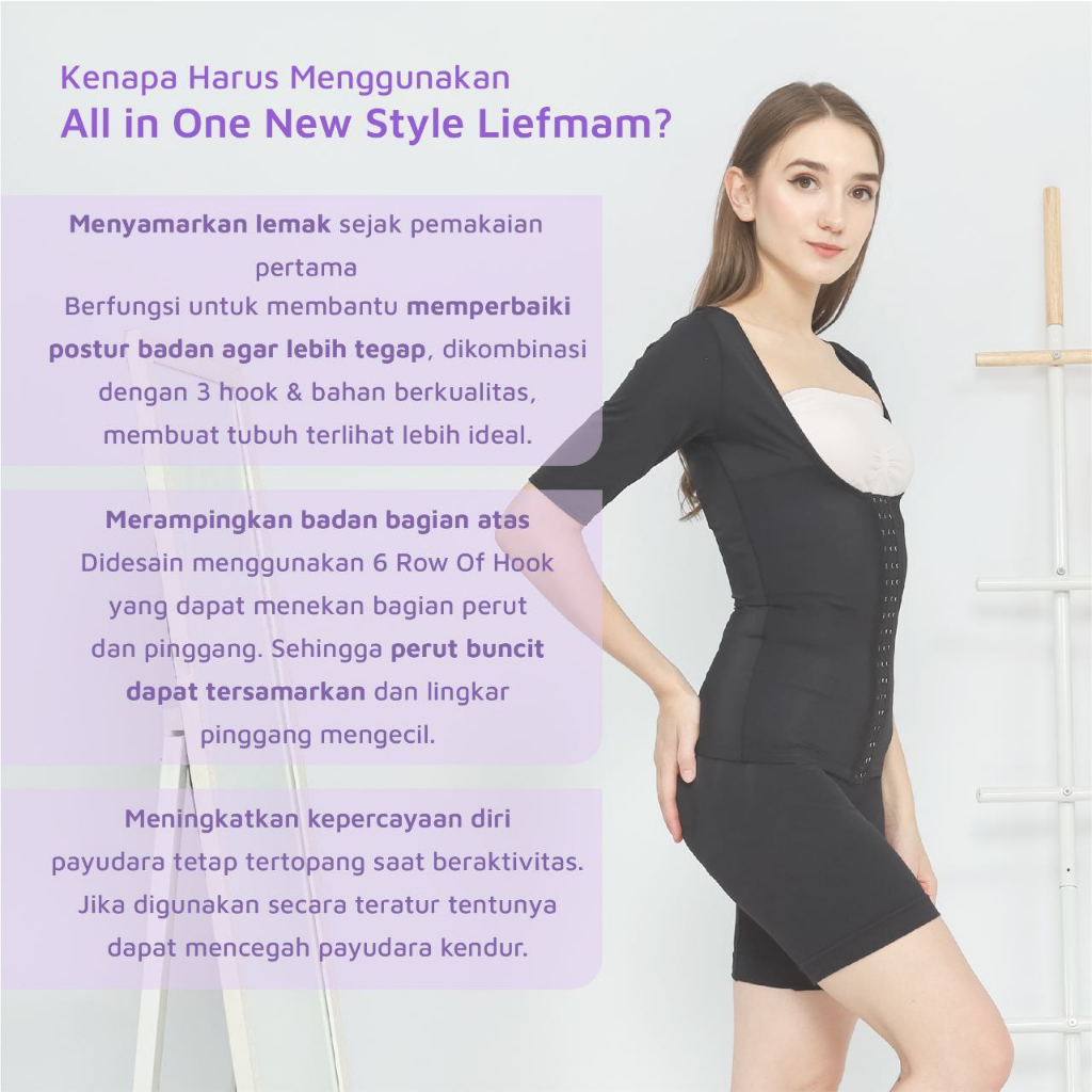 Kenapa harus menggunakan Liefmam One Set Corset ? Ingin merampingkan seluruh tubuh dari lengan, perut sampai paha? Coba deh pakai One Set Corset dari Liefmam. One Set Corset merupakan korset yang bisa merampingkan lengan, perut sampai paha. Cocok sekali untuk Mams yang mempunyai keluhan perut buncit serta lengan dan paha besar. Bisa digunakan bagi Mams pasca melahirkan atau yang sudah lama melahirkan dan semua wanita yang memiliki keluhan serupa.