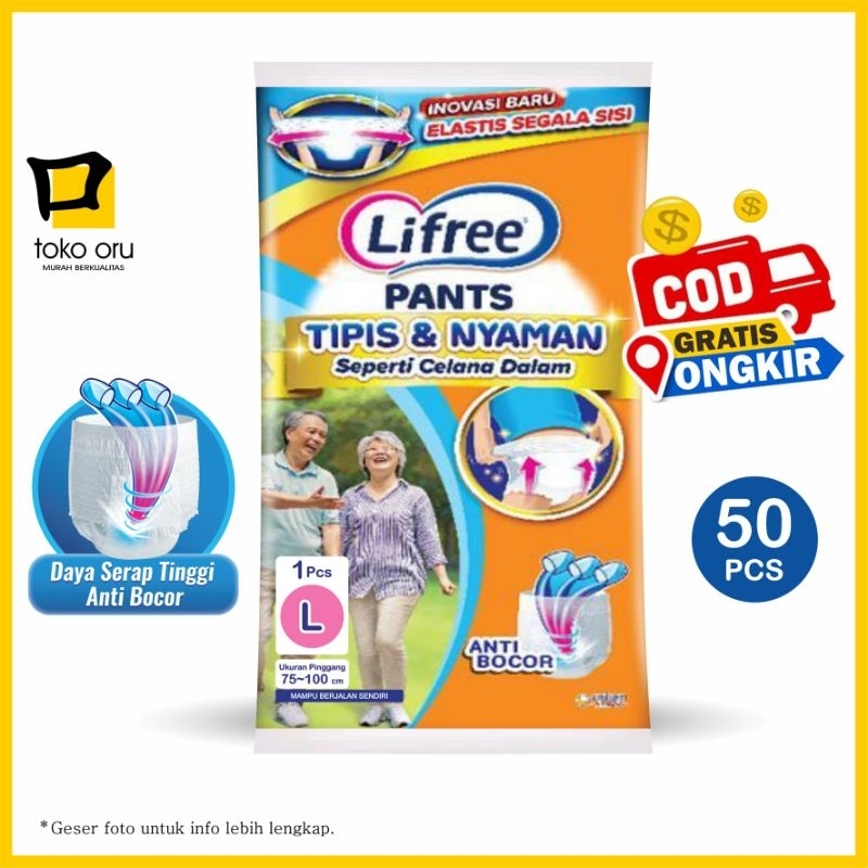 Lifree L isi 50 pcs Popok Celana Dewasa merupakan popok yang dirancang khusus untuk memahami kebutuhan orang dewasa dan lanjut usia mudah dipakai cocok bagi orang tua tetap dapat beraktivitas dengan nyaman tanpa khawatir bocor.