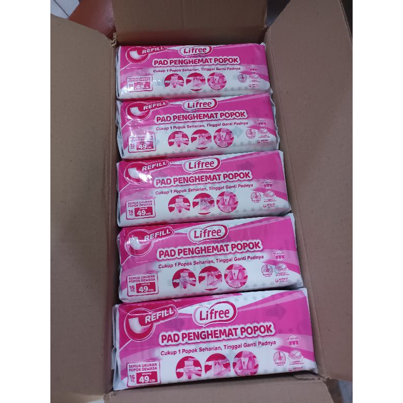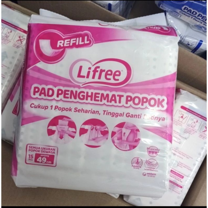 Kesehatan > Popok Dewasa > Lifree pad penghemat popok 49cm 15pads/Lifree lapisan penyerap popok perekat 49 cm 15 pads