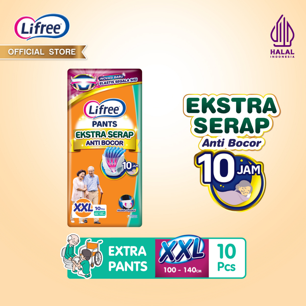 Popok celana ekstra serap urine 6 gelas, anti bocor hingga 10 jam, tahan lama dipakai baik siang maupun malam. Mudah dipakai sendiri oleh orang tua karena memiliki karet elastis di segala sisi, cocok bagi orang tua yang bisa berdiri dan berjalan dengan dibantu, sehingga tidak perlu khawatir saat tidak sempat mencapai toilet. Nyaman beraktivitas tanpa khawatir bocor.